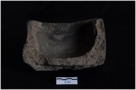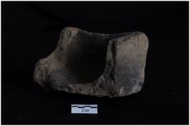 | Description / विवरण | A terracotta votive tank, Shallow, flat broken base, round on plan, black in colour, fine fabric, well fired. |
