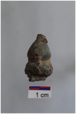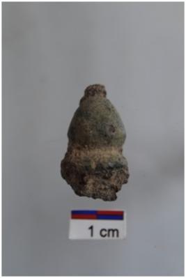 | Description / विवरण | A copper tinkling bell, round in shape, thin, a horizontally perforated knob head. |
