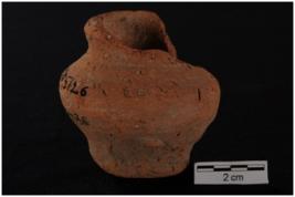 | Description / विवरण | A miniature vase with flared out rim and flat base. Red in colour, handmade, well fired. |