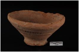 | Description / विवरण | A specimen of red ware bowl with incurved pointed rim. Disc shape base, wheel made, fine fabric. |