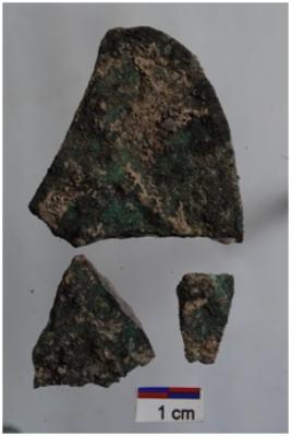 | Description / विवरण | A copper piece of probably axe, heavily rusted surface. |