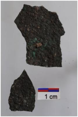 | Description / विवरण | A copper fragmentary copper sheet, heavily rusted surface. |