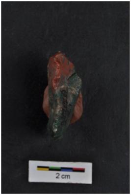| Description / विवरण | Flake, narrow towards striking platform, a vertical ridge on one surface. |