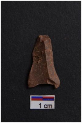 | Description / विवरण | Flake, prominent bulb with striking platform at proximal end, a ridge on dorsal surface. |