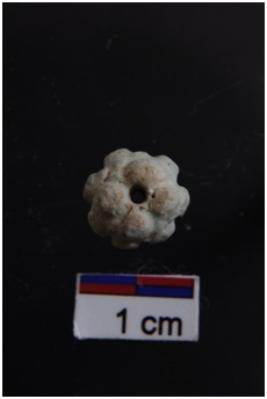 | Description / विवरण | A faience object of bead, granulated globular out line shape body green in colour. |