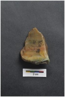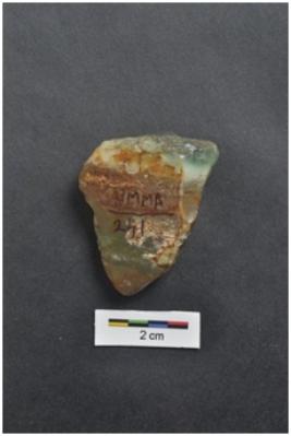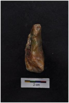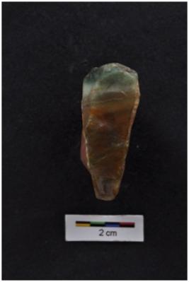 | Description / विवरण | Flake tool, triangular in shape, triangular cross section, retouches visible. |