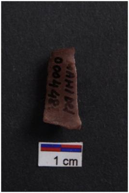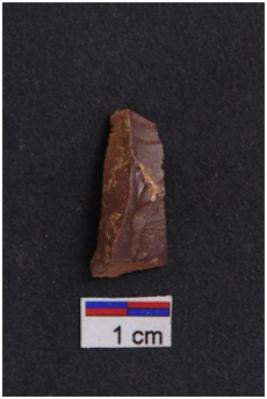 | Description / विवरण | Blade with tapering sides, diffused bulb with striking platform at proximal end, a ridge on dorsal surface, use-ware marks on both working edges |