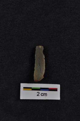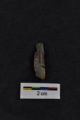 | Description / विवरण | Blade, diffused bulb with striking platform at proximal end, a ridge on dorsal surface, use-ware marks on both working edges. |