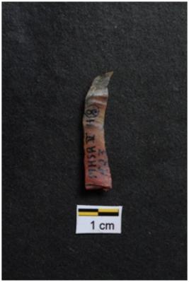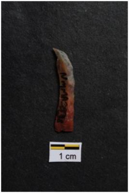| Description / विवरण | Blade, parallel sides, pointed distal end, a ridge on dorsal surface, use-ware marks on both working edges, ripple marks on dorsal surface. |