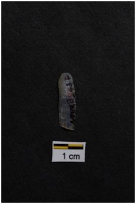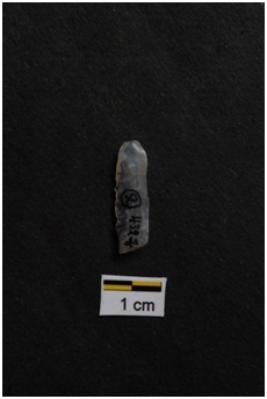 | Description / विवरण | Blade, parallel sided, prominent bulb with striking platform at proximal end, a ridge on dorsal surface, use-ware marks on both working edges. |
