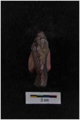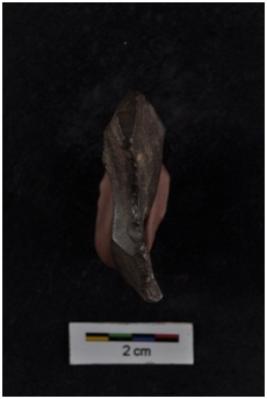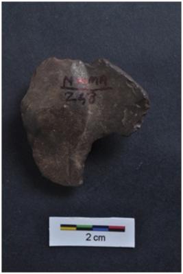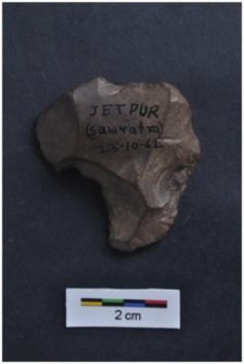 | Description / विवरण | Scraper, C shaped, prominent bulb on ventral surface, flake scars on dorsal surface, retouches on working edge. |