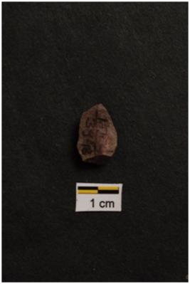 | Description / विवरण | Flake, prominent bulb with striking platform visible, a ridge on dorsal surface. |