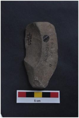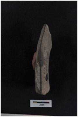 | Description / विवरण | Flake, long as well as broad body, one flake scar on dorsal surface, striking platform visible. |