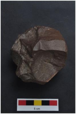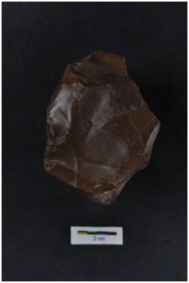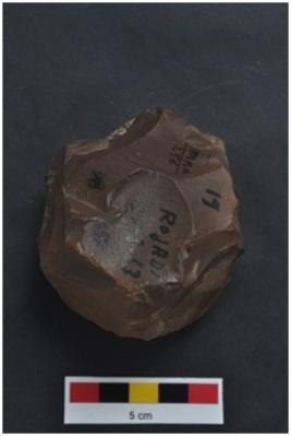 | Description / विवरण | Chopper, bifacial, circular shape, flaking on surface. |