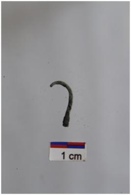 | Description / विवरण | A copper, hook circular section, thin, rusted surface. |
