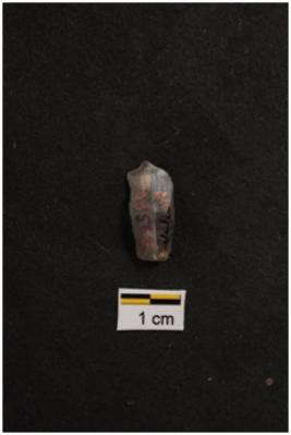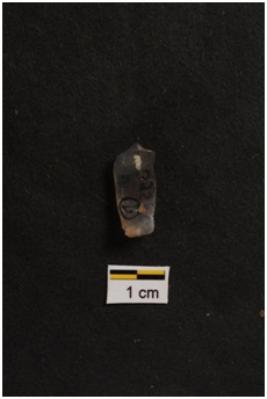 | Description / विवरण | Blade, prominent bulb with striking platform at proximal end, a ridge on dorsal surface, use-ware marks on both working edges. |