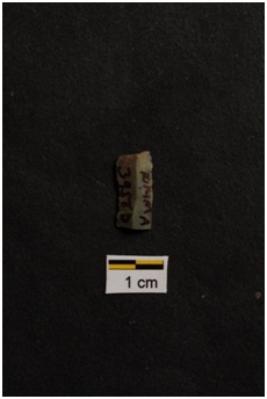 | Description / विवरण | Blade, parallel sided, a vertical ridge on dorsal surface, use-ware marks on both working edges. |