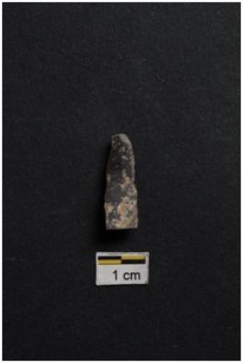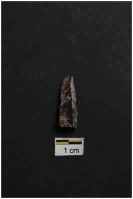 | Description / विवरण | Blade, prominent bulb with striking platform at proximal end, a ridge on dorsal surface, use-ware marks on both working edge. |