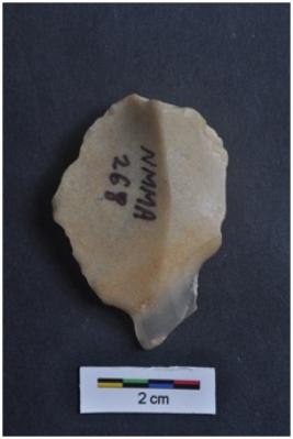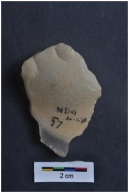 | Description / विवरण | Flake, striking platform with diffused bulb visible, |