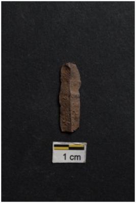 | Description / विवरण | Blade, parallel sided, diffused bulb with striking platform at proximal end, a ridge on dorsal surface, use-ware marks on both working edges. |
