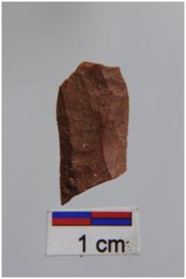 | Description / विवरण | Fragment of blade, diffused bulb with striking platform at proximal end, use-ware marks on both working edges. |
