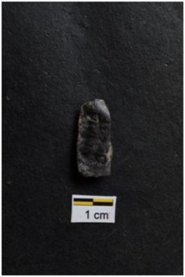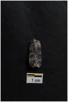 | Description / विवरण | Blade, parallel sided, prominent bulb with striking platform at proximal end, a ridge on dorsal surface, use-ware marks on both working edges. |