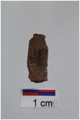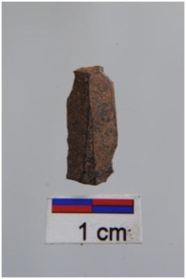| Description / विवरण | Blade, diffused bulb with striking platform at proximal end, a ridge on dorsal surface, use-ware marks on both working edges. |