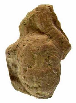 | Description / विवरण | Head of a human terracotta figure with abraded facial features. A raised left hand, eyes, wide open mouth are faintly seen. |