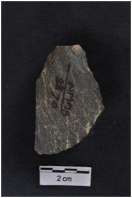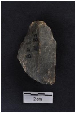 | Description / विवरण | Flake, diffused bulb with striking platform at proximal end, with mid-ridge. |
