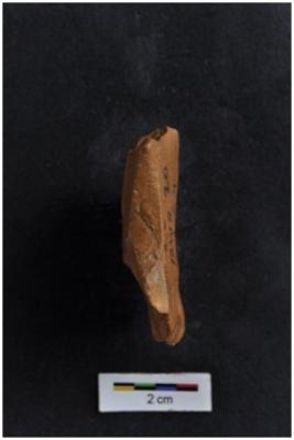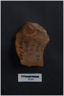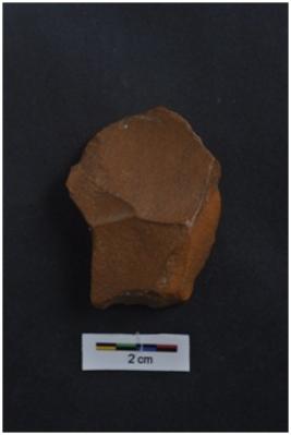 | Description / विवरण | Flake with irregular shape, diffused bulb on ventral surface, another flake scars on dorsal surface, |