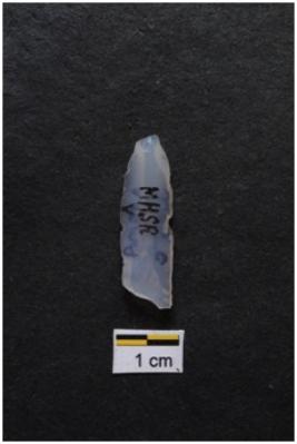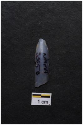 | Description / विवरण | Blade, diffused bulb with striking platform at proximal end, use-ware marks on both working edges. |
