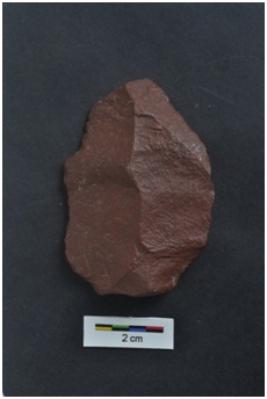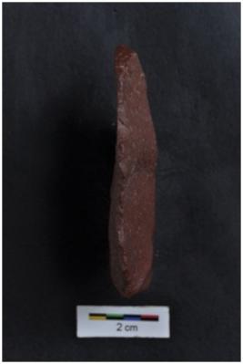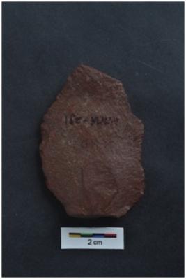 | Description / विवरण | Flake, diffused bulb with striking platform, a vertical ridge on dorsal surface. |
