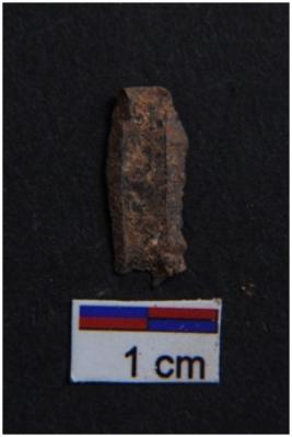 | Description / विवरण | Blade, parallel sided, diffused bulb with striking platform at proximal end, two ridges on dorsal surface, use-ware marks on both working edges. |
