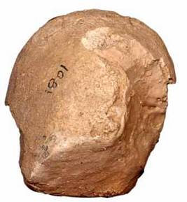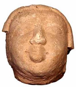 | Description / विवरण | Broken stucco piece of a human head with arc like hairdo, fore head and eyes are not clear, round face with small lips, smiling countenance, slightly short and broad nose, pointed chin. |