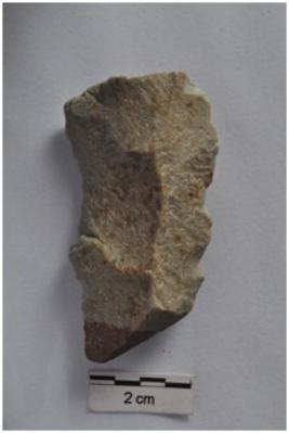 | Description / विवरण | Flake, diffused bulb with striking platform at proximal end, with mid-ridge. |