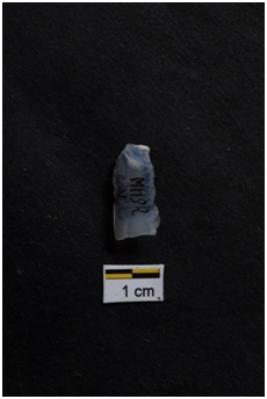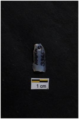 | Description / विवरण | Blade, prominent bulb with striking platform at proximal end, use-ware marks on both working edge. |