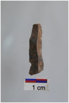 | Description / विवरण | Flake, diffused bulb with striking platform at proximal end, a ridge on dorsal surface. |