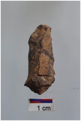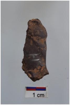 | Description / विवरण | Flake, diffused bulb with striking platform at proximal end, a ridge on dorsal surface. |