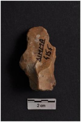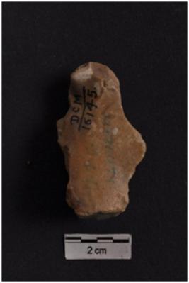 | Description / विवरण | Flake, diffused bulb with striking platform at proximal end, two ridges on dorsal surface. |