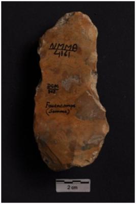 | Description / विवरण | Blade, diffused bulb with striking platform at proximal end, a ridge on dorsal surface, retouches on both working edges |