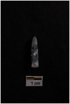 | Description / विवरण | Blade, parallel sided, use-ware marks on both working edges. |