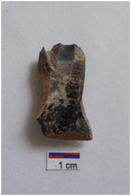 | Description / विवरण | Flake, diffused bulb with striking platform at proximal end, cortex visible on striking platform. |