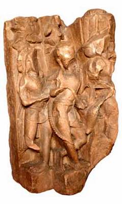| Description / विवरण | The sakha part of door jamb of a temple depicting dwarapalikas three in number resembling to that of Kakatiya temple door jambs. They stood in tribhanga posture with simple ornamentation. |