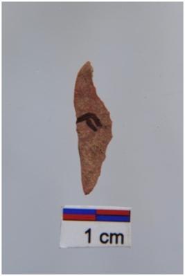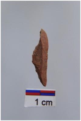 | Description / विवरण | Utilized flake, triangular shape, a ridge on dorsal surface. |
