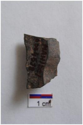| Description / विवरण | Utilized Flake with one working edge, use-ware marks on working edge. |