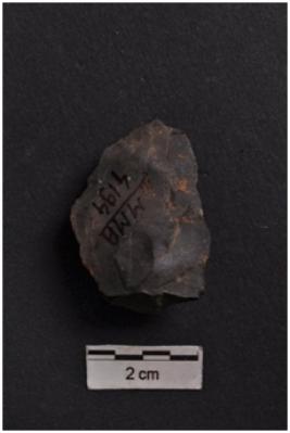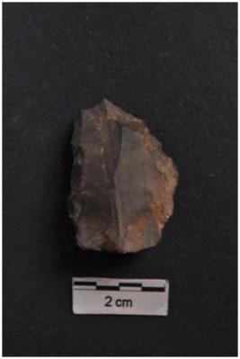 | Description / विवरण | Scraper, diffused bulb with striking platform at proximal end, a ridge on dorsal surface, retouches on both working edges |