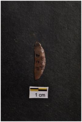 | Description / विवरण | Crescent, use-ware marks on working edge. |