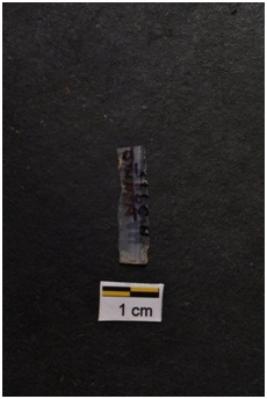 | Description / विवरण | Blade, parallel sided, a ridge on dorsal surface, use-ware marks on both working edges. |