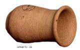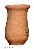 | Description / विवरण | Lota of a pale red ware with flat base, concave bulged body and splayed out externally thickened rim. |