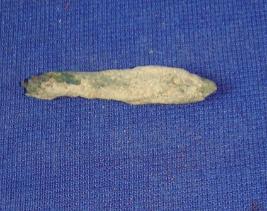 | Description / विवरण | Iron arrow head with a pointed conical tip and round blunt end. |